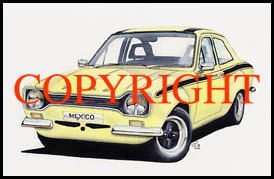 All Prints are mounted to suit a 16"x20" frame and priced at £10. It is with regret that I have to write across the face of my pictures. however, there are many people taking no notice of copyright laws, using my images on merchandise and selling it on e-bay. There are many more cars in the collection, please ask if you do not see the model you are looking for. Alternatively, If you would like to commission me to draw your car, please call or e-mail for details. |